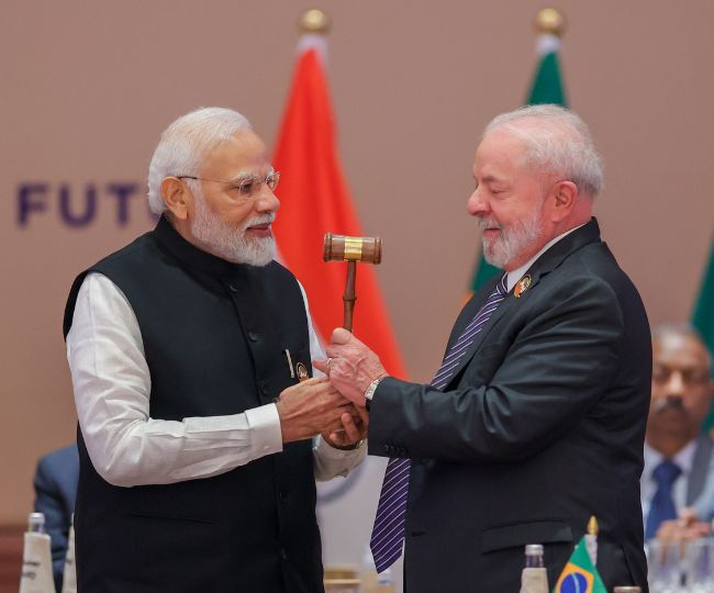 प्रधानमंत्री मोदी ने ब्राजील के राष्ट्रपति इनासियो लूला डी सिल्वा को गैवल सौंपा। भारत ने वसुधैव कुटुंबकम की भावना के साथ ऐतिहासिक आयोजन किया। जिसकी चौतरफा चर्चा हो रही है।