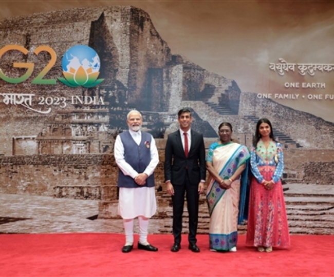 राष्ट्रपति द्रौपदी मुर्मु और प्रधानमंत्री नरेंद्र मोदी ने रात्रिभोज की शुरुआत से पहले एक मंच पर मेहमानों का स्वागत किया। इस मंच के पीछे पर्दे पर यूनेस्को के विश्व धरोहर स्थल, बिहार के प्राचीन नालंदा विश्वविद्यालय को दर्शाया गया था।