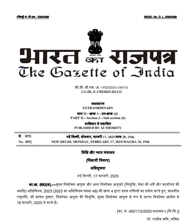 बता दें कि ज्ञानेश कुमार निवर्तमान राजीव कुमार की जगह लेंगे। ज्ञानेश कुमार इस साल के अंत में होने वाले बिहार विधानसभा चुनाव और अगले साल बंगाल, असम और तमिलनाडु में होने वाले चुनावों की देखरेख करेंगे।