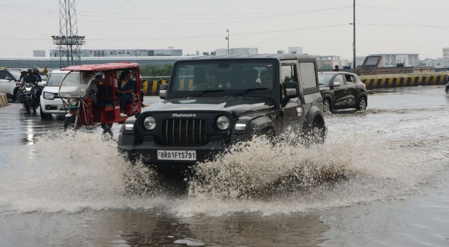 हरियाणा में भारी बारिश के बाद गुरुग्राम के विभिन्न हिस्सों में भारी जलजमाव हो गया।