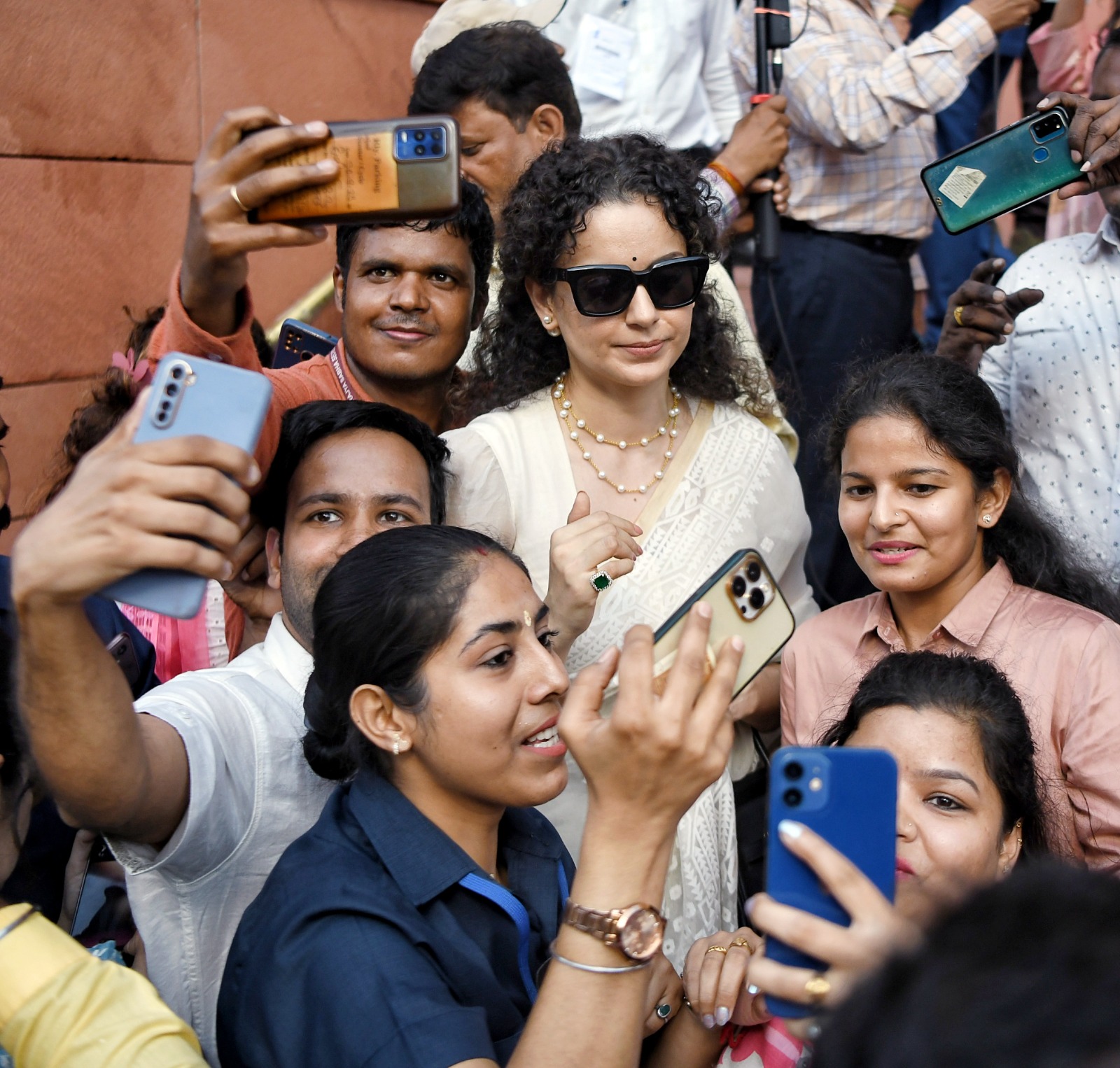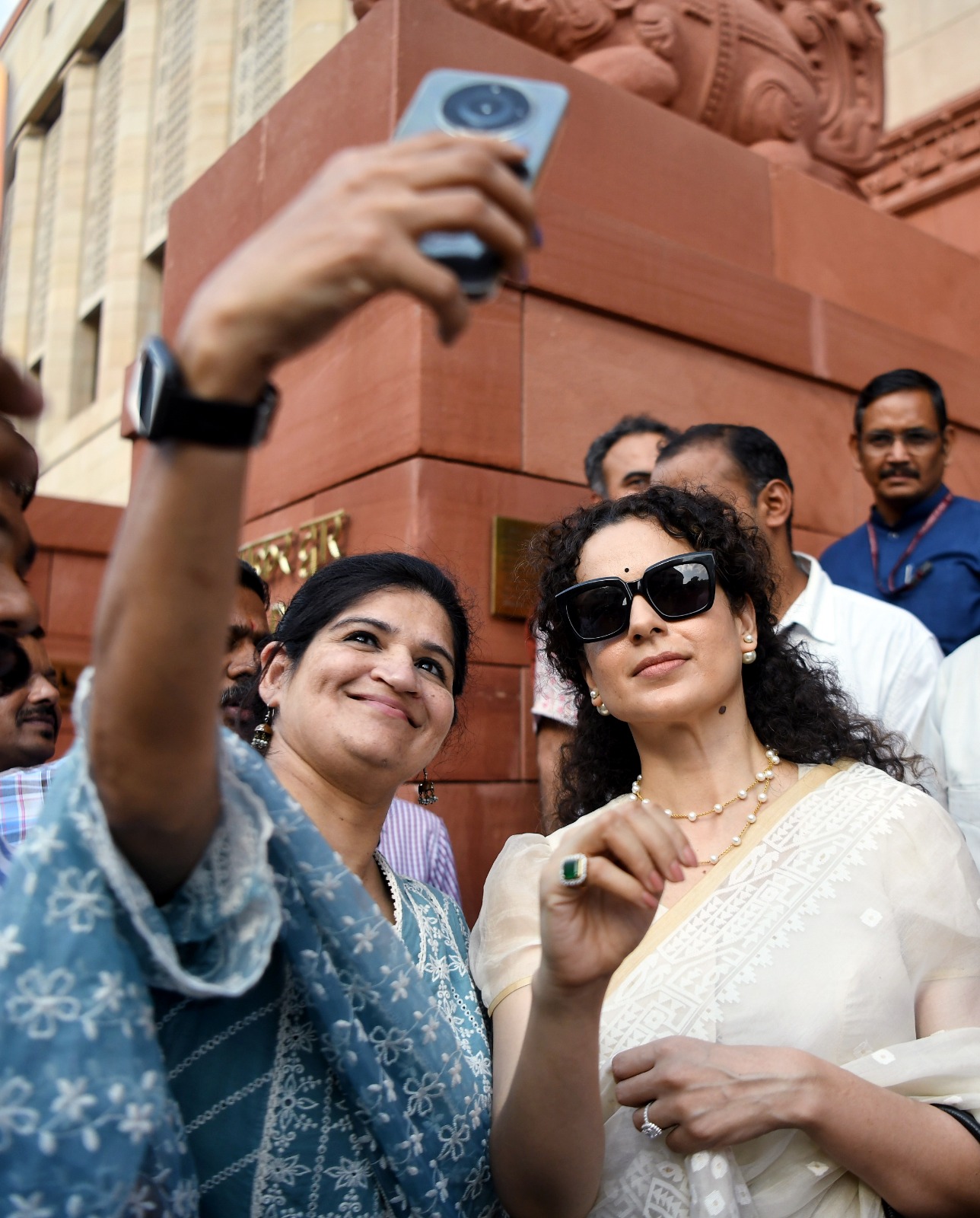 इस दौरान नए संसद भवन में प्रवेश करते हुए कंगना ने सांसदों और वहां मौजूद लोगों के साथ सेल्फी भी ली।