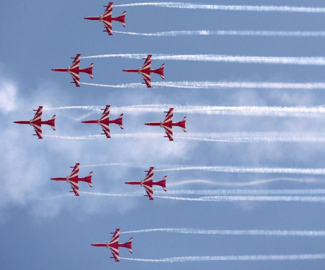 फाइनल मुकाबले से पहले विमानों ने दिखाया करतव