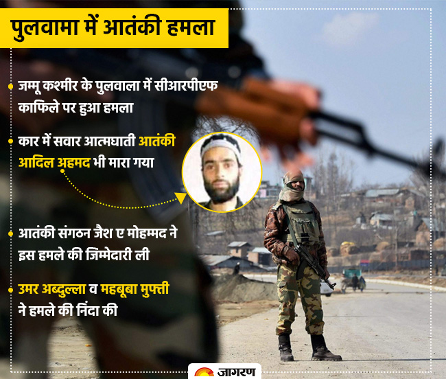 Pulwama terror attack, जम्मू-कश्मीर के पुलवामा में उड़ी से बड़े आतंकी हमले में 40 जवान शहीद हो गए, जबकि 44 अन्य घायल हो गए। जैश-ए-मोहम्मद ने हमले की जिम्मेदारी ली है।