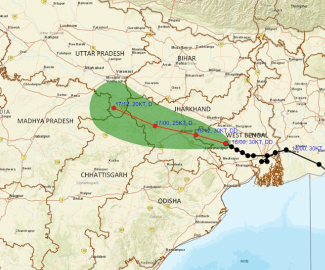 अगले 12 घंटों के दौरान यह पश्चिम बंगाल के गंगा तटीय क्षेत्र से होते हुए कमजोर होकर दबाव क्षेत्र में तब्दील हो सकता है। इसके बाद यह अगले 24 घंटों के दौरान झारखंड और उत्तरी छत्तीसगढ़ से होते हुए आगे बढ़ना जारी रखेगा।