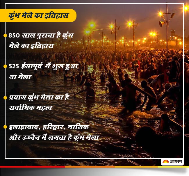 कुंभ मेले का इतिहास 850 साल पुराना है। कुछ दस्तावेज बताते हैं कि कुंभ मेला 525 बीसी में शुरू हुआ था।
