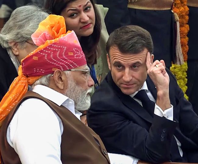 प्रधानमंत्री नरेन्द्र मोदी ने राष्ट्रपति द्रौपदी मुर्मु और व उनके फ्रांसीसी समकक्ष इमैनुएल मैक्रों की आगवानी की। राष्ट्रपति मुर्मु व मुख्य अतिथि पारंपरिक बग्गी से कर्तव्य पथ पर पहुंचे, जहां पर उन्होंने जनता का अभिवादन स्वीकार किया। इस दौरान पीएम मोदी ने मैक्रों को गले लगाया और कुछ देर दोनों को बात करते हुए भी देखा गया।