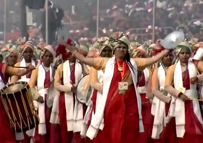 भारतीय वाद्ययंत्रों के साथ 'आवाहन' समूह ने 90 मिनट तक चलने वाली परेड की शुरुआत की। 'आवाहन' समूह आकर्षण का केंद्र रहा जिसमें 100 से अधिक महिला कलाकार विभिन्न ताल वाद्ययंत्र बजाते हुए शामिल हुईं। पहली बार परेड में शामिल इस समूह में देश के विभिन्न हिस्सों के भारतीय वाद्ययंत्रों की ध्वनियां सुनाई दे रही थीं।