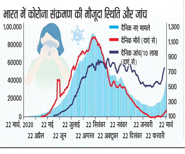 तेज हो टीकाकरण, तभी बनेगी बात: भारत में गत 67 दिनों में कोरोना वैक्सीन के 5.08 करोड़ टीके लगाए गए हैं। एसबीआइ का मानना है कि रोजाना 45 लाख टीके लगाने पर इस साल 21 जुलाई तक देश में 45 साल से अधिक उम्र के सभी व्यक्तियों का टीकाकरण संभव हो सकेगा। स्वास्थ्य क्षेत्र की मौजूदा बुनियादी सुविधाओं को देखते हुए रोजाना एक करोड़ टीके लगाए जा सकते हैं जो अभी मात्र 34 लाख लगाए जा रहे हैं। रोजाना 34 लाख डोज को 40-45 लाख तक ले जाने पर पूरी आबादी के टीकाकरण में 21 महीने लग जाएंगे।