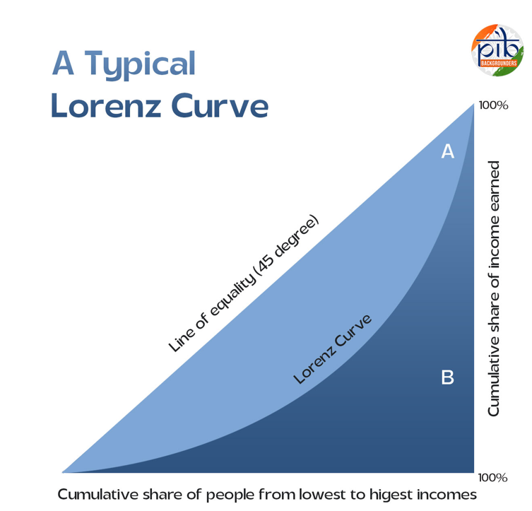 गिनी इंडेक्स लॉरेंज कर्व और पूर्ण समानता की एक काल्पनिक रेखा के बीच के क्षेत्र को मापता है, या दोनों के बीच के अंतर को रेखा के नीचे अधिकतम क्षेत्र के प्रतिशत के रूप में व्यक्त करता है। अंतर जितना बड़ा होगा, आय उतनी ही असमान होगी। यह एक स्पष्ट संख्या देता है जो दर्शाता है कि आय कितने उचित रूप से फैली हुई है।