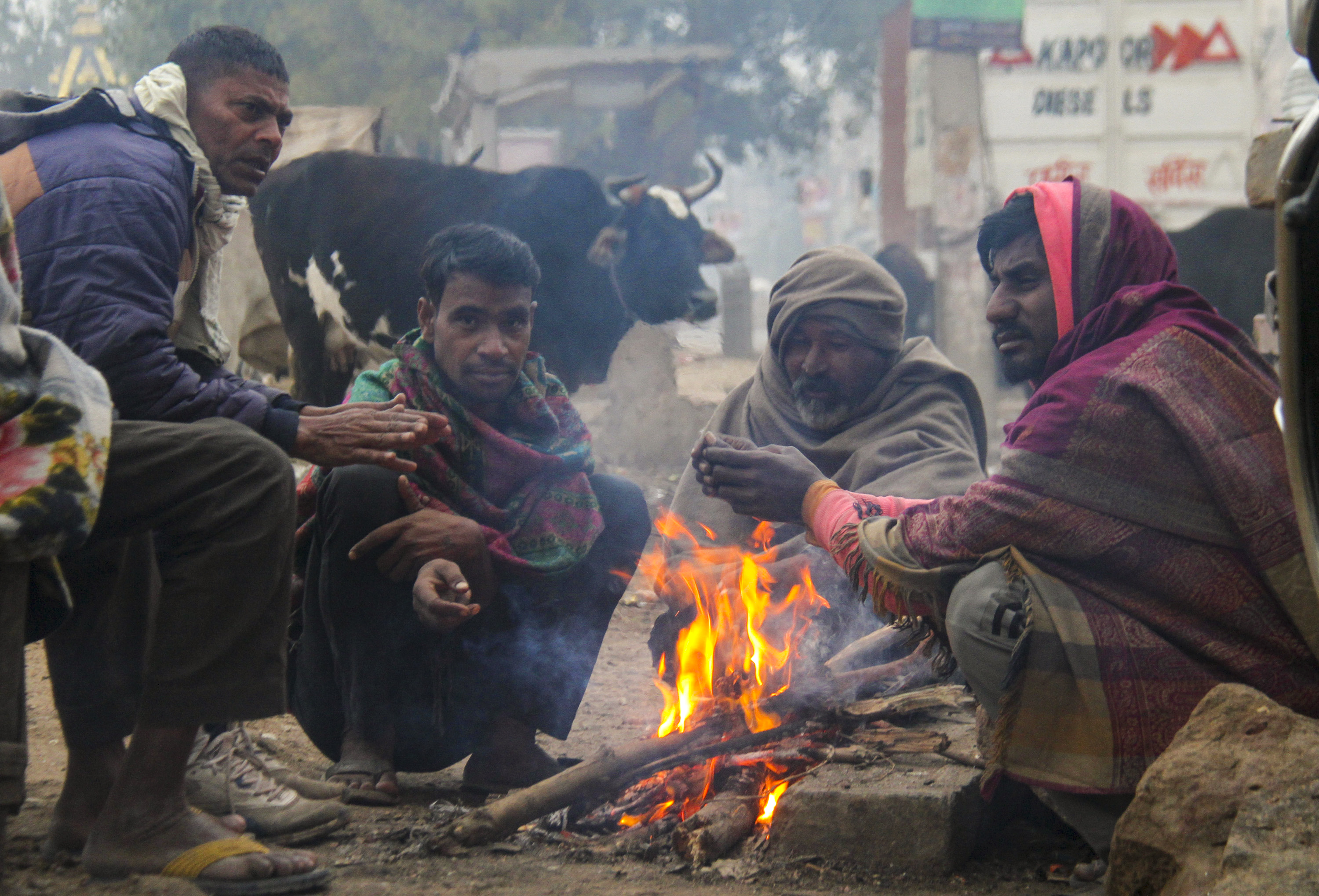 गुरुग्राम: गुरुग्राम में सर्दी के दिन लोग खुद को गर्म रखने के लिए अलाव के चारों ओर बैठे हैं। (फोटो - पीटीआई)
