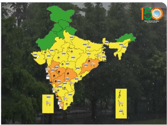 मौसम विभाग ने आज महाराष्ट्र,उत्तरी कर्नाटक, उड़ीसा, आंध्र प्रदेश, केरल और कोंकण तट पर मूसलाधार बारिश होने की संभावना जताई है। इसके अलावा जम्मू कश्मीर, पंजाब, उत्तराखंड, हिमाचल प्रदेश, पश्चिमी राजस्थान, दिल्ली और अरुणाचल प्रदेश में बारिश होने के आसार नहीं हैं। वहीं, अन्य राज्यों में बारिश का येलो अलर्ट जारी किया गया है।