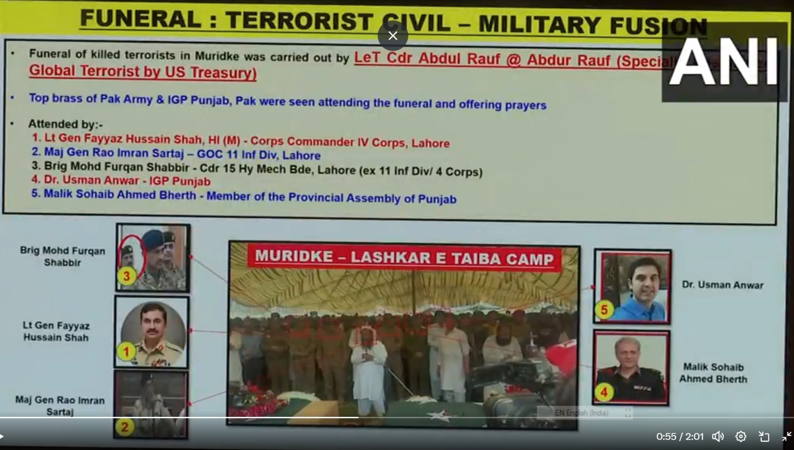 DGMO लेफ्टिनेंट जनरल राजीव घई ने कहा कि वहां 9 शिविर थे, जिनसे आप सभी परिचित हैं, तथा हमारी विभिन्न खुफिया एजेंसियों ने उसकी पुष्टि की। इनमें से कुछ PoJK में थे, जबकि कुछ अन्य पाकिस्तान के पंजाब प्रांत में स्थित थे। लश्कर-ए-तैयबा का गढ़ मुरीदके जैसे नापाक स्थानों ने वर्षों से अजमल कसाब और डेविड हेडली जैसे कुख्यात लोगों को जन्म दिया है।