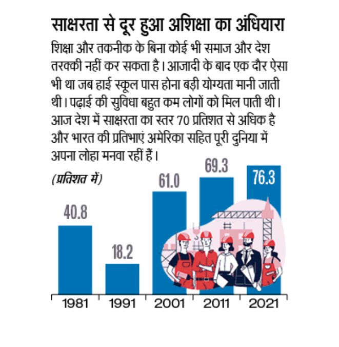 भारत के पड़ोसी देश राजनीतिक उथल-पुथल से जूझ रहे हैं। वहीं हमारा लोकतंत्र लगातार मजबूत हुआ है। 1947 से अब तक भारत ने अपनी साक्षरता दर बढ़ाकर 70% से अधिक कर ली है। औसत आयु 40 से 70 वर्ष हो गई है और हम दुनिया की चौथी सबसे बड़ी अर्थव्यवस्था बन गए हैं। समावेशी राजनीति और गरीबी में कमी ने...
