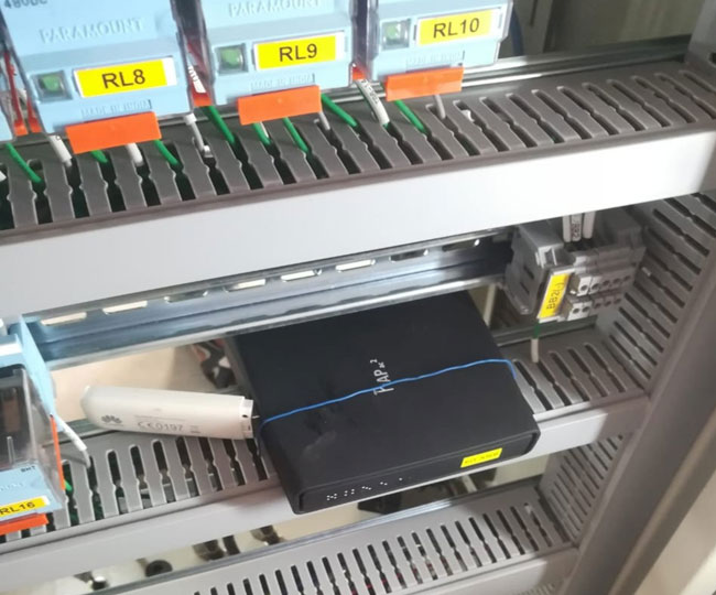 मुरादाबाद मंडल के रेलवे इंजीनियर द्वारा तैयार किया गया स्काडा (काले रंग में)। मंडल में इसे अभी ट्रायल के तौर पर प्रयोग किया जा रहा है। सौ. रेलवे