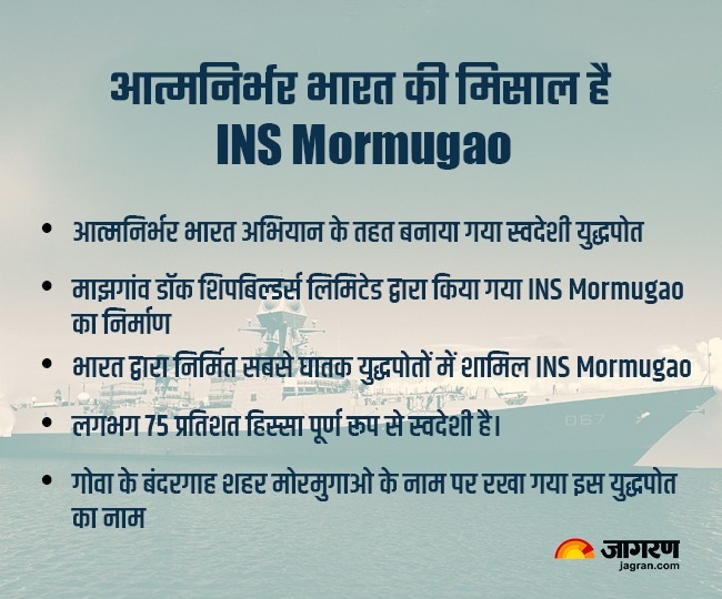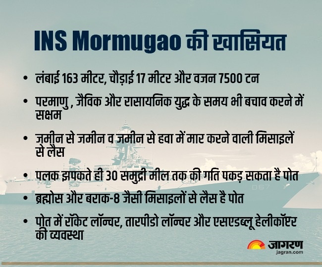 बता दें कि INS Mormugao में जमीन से जमीन व जमीन से हवा में मार करने वाली मिसाइलें, तारपीडो ट्यूब्स और लॉन्चर, पनडुब्बी रोधी रॉकेट लॉन्चर, एकीकृत प्लेटफॉर्म प्रबंधन प्रणाली, स्वचलित ऊर्जा प्रबंधन प्रणाली, फोल्डेबल हैंगर डोर, हेलो ट्रैवर्सिंग सिस्टम, क्लोज-इन युद्धक प्रणाली और बो माउंटेड सोनार शामिल है। इससे पहले पिछले साल आईएनएस विशाखापत्तनम को भारतीय नौसेना में शामिल किया गया था।