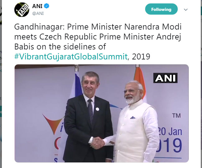 गांधीनगर में प्रधानमंत्री नरेंद्र मोदी ने चेक गणराज्य के प्रधानमंत्री लेडी बेबिस से मुलाकात की।