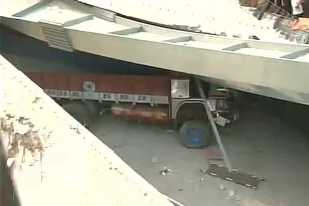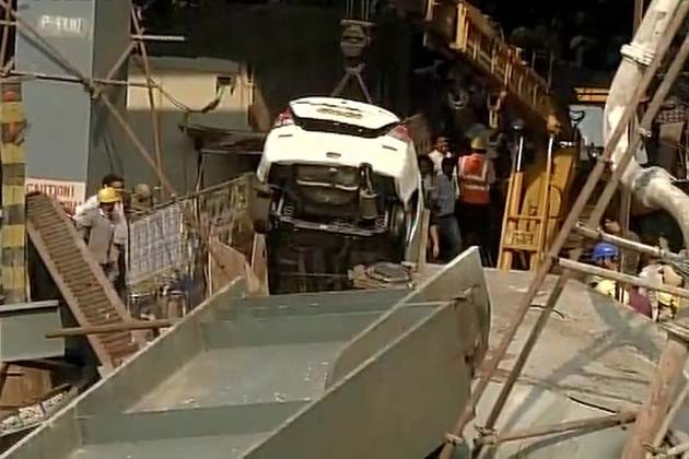फ्लाईओवर के मलबे के नीचे कई वाहन फंसे हुए हैं।