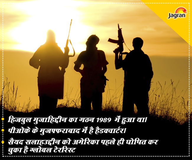 गौरतलब है कि हिजबुल मुजाहिद्दीन का गठन 1989 में हुआ था। इसका हैडक्वार्टर पीओके के मुजफ्फराबाद में है। इस संगठन के सैयद सलाहउद्दीन को अमेरिका पहले ही ग्लोबल टेररिस्ट घोषित किया जा चुका है। हालांकि इस घोषणा का उस पर या फिर पाकिस्तान की सरकार पर कोई असर होता दिखाई नहीं दिया है। इसकी वजह है कि वह पाकिस्तान में खुलेआम घूमता है और भारत के खिलाफ तकरीर देता है। इतना ही नहीं वह पाक अधिकृत कश्मीर में अपने आतंकियों को ट्रेनिंग के लिए कैंप भी चलाता है। उसको न सिर्फ वहां की सरकार बल्कि पाकिस्तान की खुफिया एजेंसी आईएसआई का पूरा समर्थन मिला हुआ है। पिछले साल संयुक्त राष्ट्र में पाकिस्तान के तत्कालीन प्रधानमंत्री नवाज शरीफ ने कश्मीर में मारे गए हिजबुल कमांडर बुरहान वानी को स्वतंत्रता सेनानी बताकर महिमामंडित करने की कोशिश की थी। जबकि बुरहान वानी पर घाटी में कई आतंकी वारदातों को अंजाम देने का आरोप था।