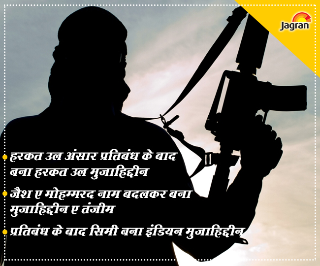 हरकत उल अंसार पर प्रतिबंध लगने के बाद इस संगठन ने अपना नाम बदलकर हरकत उल मुजाहिद्दीन रख लिया था। जैश ए मोहम्मद ने अपना नाम बदलकर मुजाहिद्दीन ए तंजीम रख लिया था। सिमी ने भी प्रतिबंध के बाद अपना नाम इंडियन मुजाहिद्दीन रख लिया था।