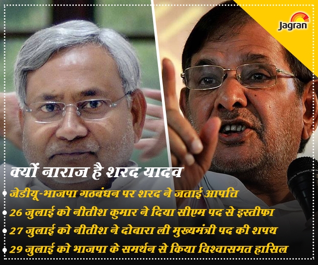 इस वक्त ये एक बड़ा सवाल बना हुआ है कि जेडीयू के वरिष्ठ नेता अपने भरोसेमंद और बिहार के मुख्यमंत्री से अचानक इतने नाराज क्यों हो गए। राजनीतिक विश्लेषक शिवाजी सरकार ने Jagran.com से खास बातचीत में बताया कि शरद यादव को इस समय पर्याप्त सम्मान नहीं मिल रहा है और अपने आपको वे पार्टी में उपेक्षित महसूस कर रहे हैं। शरद यादव को ऐसा लग रहा है कि उनको भरोसे में लिए बिना ही नीतीश कुमार ने महागठबंधन को तोड़कर भारतीय जनता पार्टी के साथ गठबंधन करने का फैसला लिया था।
