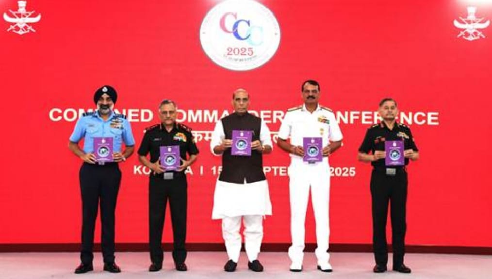 कोलकाता में सशस्त्र बलों का तीन दिवसीय संयुक्त कमांडर सम्मेलन संपन्न हुआ। इसमें सेनाओं के भविष्य की योजनाओं पर विचार किया गया और तीनों सेनाओं के बीच तालमेल बढ़ाने पर जोर दिया गया। रक्षा मंत्रालय और तीनों सेनाओं के शीर्ष अधिकारियों ने रणनीतिक मुद्दों पर चर्चा की। सम्मेलन में सुधारों का वर्ष- भविष्य के लिए परिवर्तन विषय पर ध्यान केंद्रित किया गया।