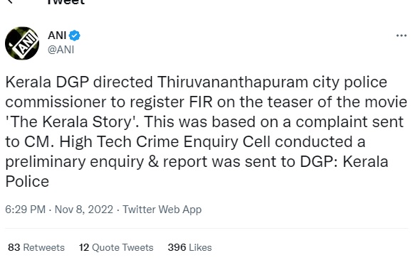 केरल पुलिस के अनुसार, यह निर्देश मुख्यमंत्री पिनाराई विजयन को भेजी गई एक शिकायत पर आधारित है। फिल्म को लेकर एक हाई चेक क्राइम इंक्वायरी सेल ने प्रारंभिक जांच की, जिसकी रिपोर्ट डीजीपी को भेजी गई। मामले में पुलिस ने कहा कि, डीजीपी ने निर्देश इसी रिपोर्ट के आधार पर लिया था।