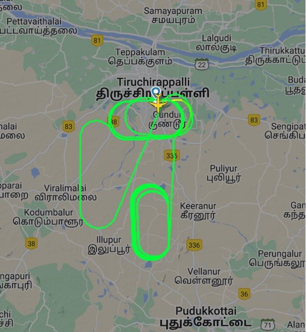 (विमान काफी देर तक त्रिची एयरपोर्ट के चारों ओर ही चक्कर लगाता रहा। Photo- flightradar24)