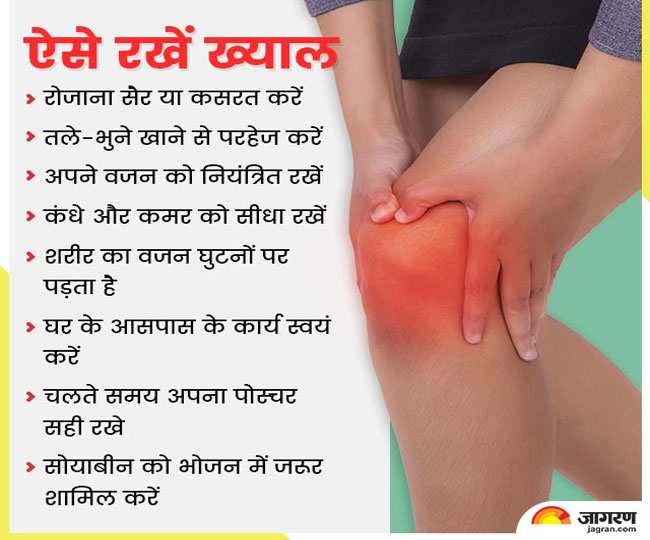 दिल्ली के वरिष्ठ अस्थि व जोड़ प्रत्यारोपण विशेषज्ञ डॉ. एल. तोमर ने बताया कि अगर आपका काम बैठकर करने वाला है तो हर एक घंटे बाद उठकर 10 मिनट घूमें। इन छोटी-छोटी बातों को जीवन में अमल में लाकर आप घुटनों के दर्द से बच सकते हैं और जीवन को सेहतमंद बना सकते हैं।