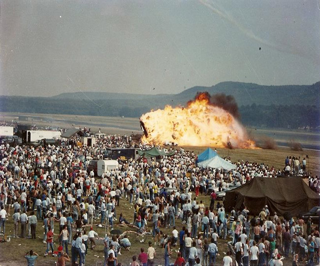 अगस्त 1988 में आयोजित इस एयरशो के दौरान इटली की एयरफोर्स की टीम अपना करतब दिखा रही थी। इसी दौरान विमानों में जबरदस्त टक्कर हुई और देखते ही देखते विमान आग का गोला बनकर जमीन पर गिर गए। इन विमानों का जलता मलबा रनवे समेत वहां मौजूद लोगों के ऊपर आ गिरा। इसके अलावा विमानों के जलते मलबे ने वहां पर मौजूद इमरजेंसी मेडिकल इवेक्यूएशन हेलीकाप्टर को भी अपनी चपेट में ले लिया। जिस वक्त ये हादसा हुआ उस वक्त पश्चिमी जर्मनी के अमेरिकी Ramstein एयरबेस पर इसको देखने के लिए काफी संख्या में लोग जमा हुए थे। इस हादसे में तीन पायटल समेत 67 लोग मारे गए थे। इसके अलावा 356 लोग गंभीर रूप से घायल भी हुए थे। 500 लोगों को मामूली चोट के बाद अस्पतालों से छुट्टी दे दी गई थी।
