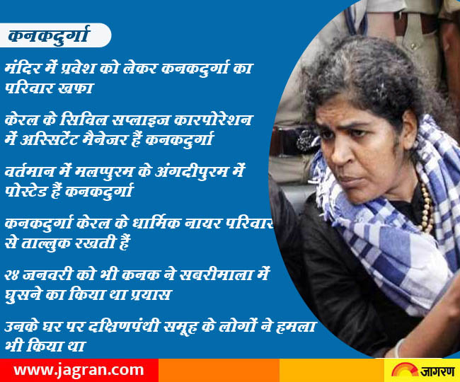 आपको जानकर हैरानी होगी कि मंदिर में प्रवेश करने वाली कनकदुर्गा का परिवार भी इस हक में नहीं था कि वह ऐसा करें। यहां तक की इस पूरी मुहिम के दौरान वह अपने परिवार के संपर्क में भी नहीं रही। आलम ये रहा है कि उनके परिवार ने ही उनकी गुमशुदगी की रिपोर्ट भी दर्ज करा दी थी। इसके बाद उन्होंने एक वीडियो जारी कर कहा था कि वह सुरक्षित हैं। कनक केरल राज्य सिविल सप्लाइज कारपोरेशन में अस्सिटेंट मैनेजर हैं और वो मलप्पुरम के अंगदीपुरम में पोस्टेड हैं। वो परंपरागत तौर पर केरल के धार्मिक नायर परिवार से हैं। 24 जनवरी को जब कनक ने सबरीमाला में जाने का प्रयास किया था तो इसके बाद इनके एरोकोड स्थित घर और उनके पति के अंगदीपुरम स्थित घर पर दक्षिणपंथी समूह के लोगों ने हमला भी किया था।