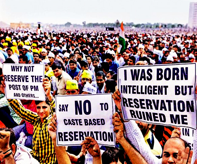 आज के दौर में आरक्षण एक समूह के उत्थान की जरूरत से ज्यादा राजनीतिक मुद्दा बन चुका है। साथ ही आरक्षित वर्ग के संभ्रांत और ऊंची पहुंच वाले लोगों के लिए ये आरक्षण उनकी पीढ़ियों का भविष्य सुरक्षित रखने का माध्यम बन चुका है। भारतीय संविधान में आरक्षण की जो व्यवस्था की गई थी, उसका उद्देश्य केवल कमजोर और दबे कुचले लोगों के जीवन स्तर को ऊपर उठाना था। इस मामले में हमारे राजनेताओं की सोच अंग्रेजों की सोच से ज्यादा विकृत निकली। यही वजह है कि आरक्षण का समय समाप्त होने के बाद भी वीपी सिंह ने मंडल आयोग की सिफारिशें न सिर्फ अपनी मर्जी से कराईं, बल्कि उन्हें लागू भी किया। इसके खिलाफ सवर्ण युवाओं ने काफी हंगामा और प्रदर्शन किया। इन सवर्ण छात्रों ने संसद से लेकर सड़क तक विरोध प्रदर्शन किया। इसके कुछ की जान भी चली गई। आरक्षण आज ऐसा मुद्दा बन चुका है जो किसी भी राजनीतिक पार्टी के लिए जीत-हार की वजह बनता है।