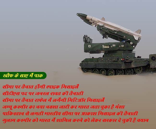 - तीसरी वजह पाकिस्तान से लगती सीमा पर आकाश मिसाइल की तैनाती की घोषणा भी है। इसकी तैनाती 15 हजार फीट से अधिक ऊंचाई वाले इलाकों में की जाएगी। दस हजार करोड़ की लागत से इसकी दो रेजिमेंट को बनाने को भी सरकार हरी झंडी दे दी गई है। आपको बता दें कि भारत पहले ही स्पाइक मिसाइलों की तैनाती सीमा पर कर चुका है। इसके अलावा सीमा पर तैनात राफेल जेट विमानों पर हवा से हवा में मार करने वाली मिटिऑर मिसाइल की तैनाती को भी सरकार मंजूरी दे चुकी है। ये मिसाइल किसी भी मौसम में 120 से 150 किमी तक की दूरी में अचूक निशाना लगा सकती है। 190 किलोग्राम वजनी ये मिसाइल 3.7 मीटर लंबी है और अडवांस राडार सिस्टम से लैस है। इसको BVR यानी बियॉन्ड विजुअल रेंड मिसाइल भी कहा जाता है।