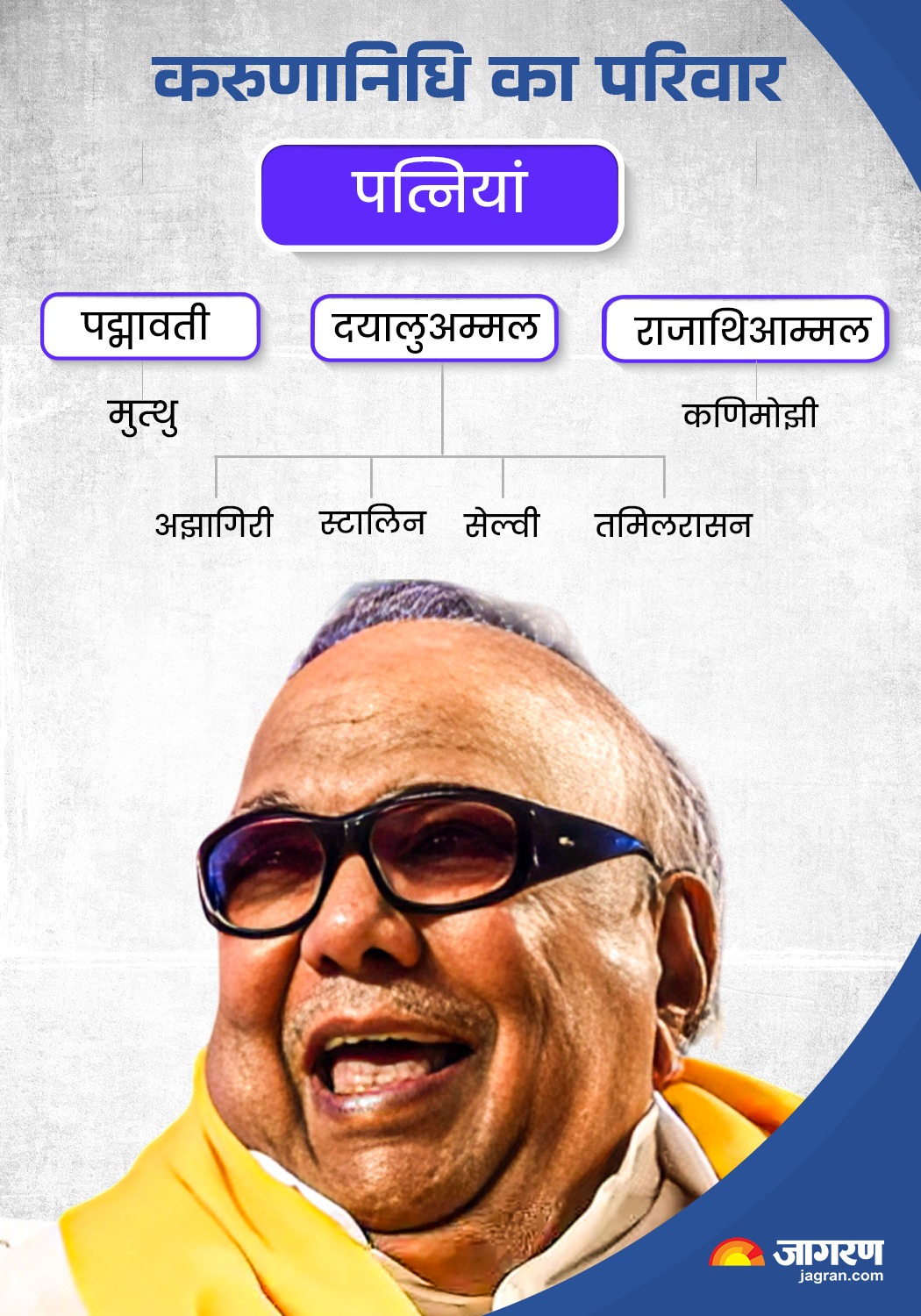 तमिलनाडु के पूर्व मुख्यमंत्री और डीएमके प्रमुख एम. करुणानिधि ने तीन बार विवाह किया था। उनकी दूसरी और तीसरी शादी उस समय हुई जब वे पहले से एक स्थापित नेता बन चुके थे।