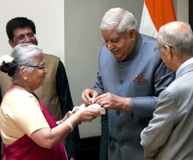 सुधा मूर्ति ने अपने पति एनआर नारायण मूर्ति की मौजूदगी में राज्यसभा के सदस्य के रूप में शपथ ली। राज्यसभा के सभापति जगदीप धनखड़ ने संसद भवन स्थित अपने कक्ष में उन्हें शपथ दिलाई। इस अवसर पर सदन के नेता पीयूष गोयल भी उपस्थित रहे।