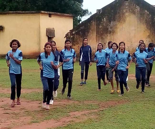 जगदलपुर: शबरी कन्या आश्रम परिसर में अभ्यास करती हुईं आदिवासी बालिकाएं। नईदुनिया