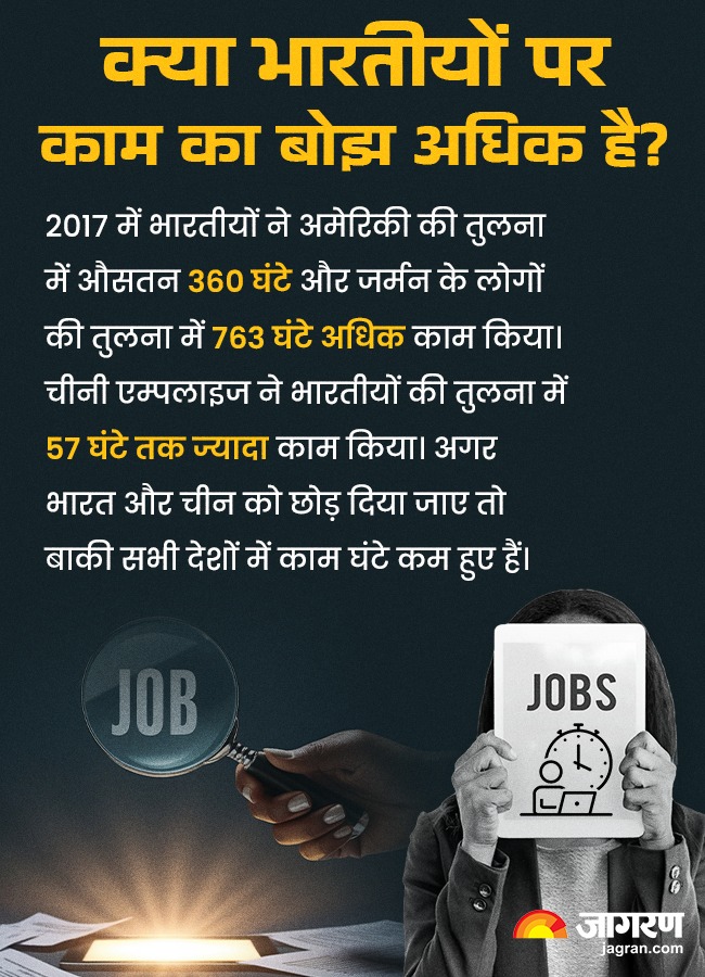 अंतरराष्ट्रीय श्रम संगठन के मुताबिक भारत में कर्मचारी औसतन हर सप्ताह में 46.7 घंटे काम करते हैं। वैश्विक स्तर पर भारत इस मामले में 13वें स्थान पर है।