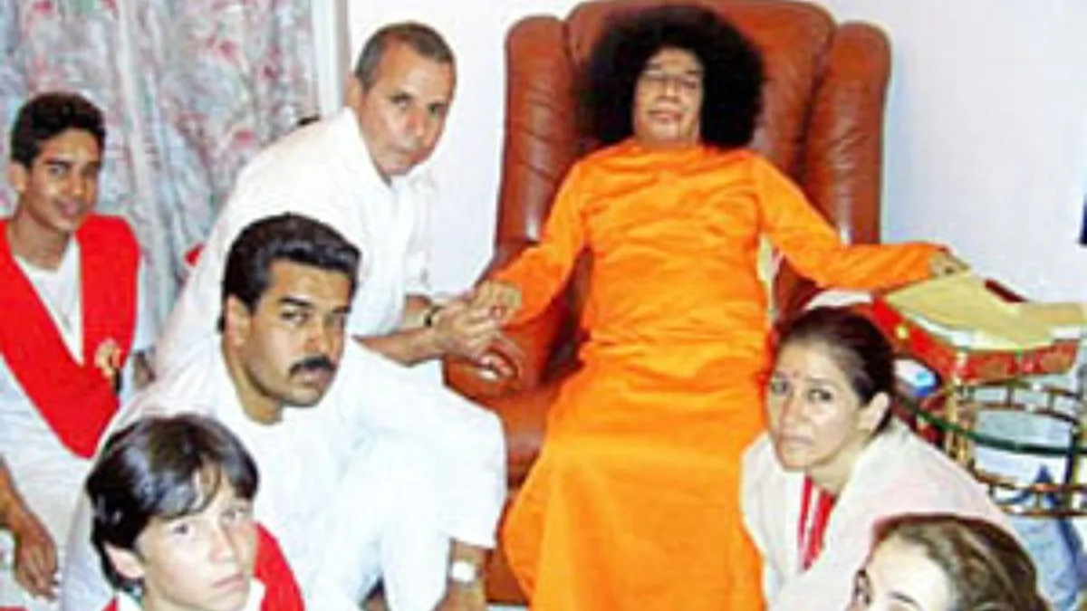 निकोलस मादुरो की एक तस्वीर सोशल मीडिया पर सामने आई है, जिसमें वो अपनी पत्नी फ्लोरेस के साथ सत्य साईं बाबा के पास जमीन में बैठे हैं। कई रिपोर्ट्स की मानें तो वेनेजुएला में सत्ता संभालने के बाद भी मादुरो ने मीराफ्लोरेस पैलेस स्थित अपने निजी कार्यालय में साइमन बोलिवर, ह्यूगो चावेज और सत्य साईं बाबा की तस्वीर लगाई थी।
