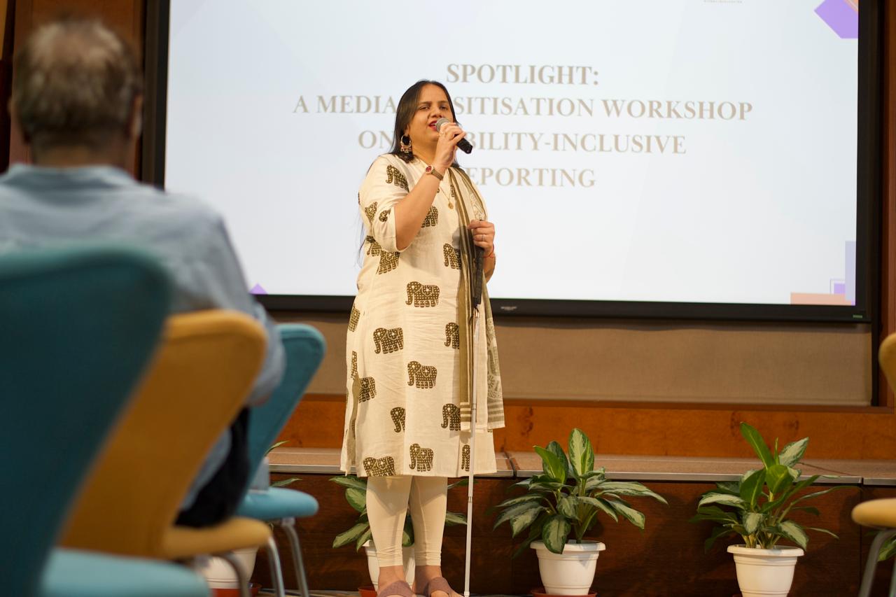 दिव्यांगता समावेशी रिपोर्टिंग पर यह एक दिवसीय कार्यशाला भारत में संयुक्त राष्ट्र संघ, यूएन वोमेन और गैर सरकारी संगठन राइसिंग फ्लेम व इंटरनेशनल पर्पल फेस्ट ने मिल कर दिल्ली स्थित यूनाइटेड नेशन्स हाउस में आयोजित हुई। इस कार्यशाला को भारत सरकार के दिव्यांगजन सशक्तिकरण विभाग, गोवा के दिव्यांगजन राज्य आयुक्त, भारत में संयुक्त राष्ट्र और यूएन वोमेन (संयुक्त राष्ट्र महिला संस्था) ने मिलकर आयोजित किया और इसमें भाग लिया।