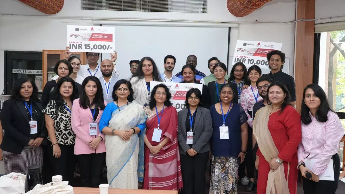 देश भर से अठारह छात्रों ने पत्रकारिता, सार्वजनिक भलाई, शासन और नीति, मीडिया साक्षरता और शिक्षा, सोशल मीडिया और मार्केटिंग और पीआर पर एआई के प्रभाव पर विचार किया। समापन समारोह के चीफ गेस्ट नैसकॉम में प्रधान संपादक और इंडियाएआई के प्रमुख श्री शकूर राथर ने एआई के अवसरों जैसे पर्सनलाइज्ड लर्निंग, फेक्ट चैकिंग टूल, कंटेट क्रिएशन और निष्पक्षता की कमी , (lack of fairness) पारदर्शिता, जवाबदेही, गलत सूचना, डीपफेक, और नौकरी विस्थापन (Job Displacement) जैसी चुनौतियों को रेखांकित किया है