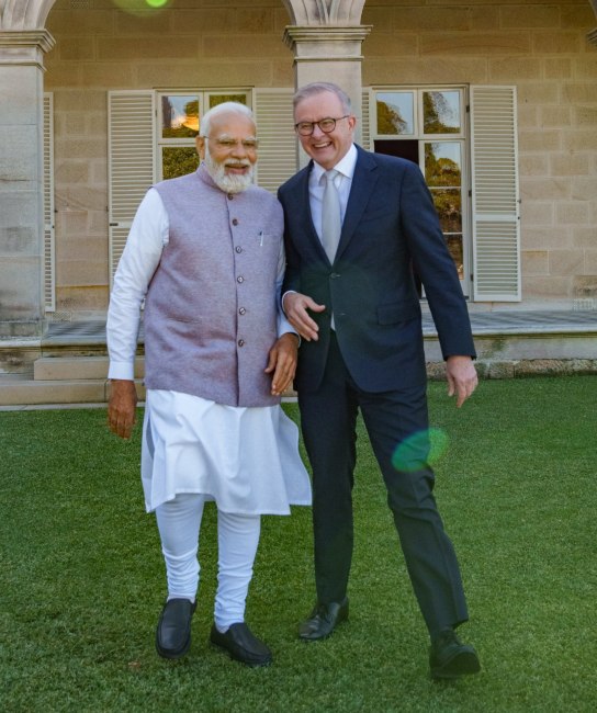 प्रधानमंत्री नरेंद्र मोदी ने बुधवार को सिडनी, ऑस्ट्रेलिया में अपने ऑस्ट्रेलियाई समकक्ष के साथ द्विपक्षीय बैठक की। बैठक में भारत के विदेश मंत्री (ईएएम) एस जयशंकर और राष्ट्रीय सुरक्षा सलाहकार (एनएसए) अजीत डोभाल ने भी भाग लिया।