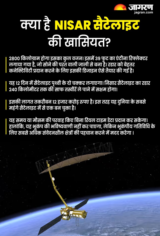 - यह 12 दिन में सैटेलाइट पृथ्वी के दो चक्कर लगाएगा। निसार सैटेलाइट का रडार 240 किलोमीटर तक की साफ तस्वीरें ले पाने में सक्षम होगा।