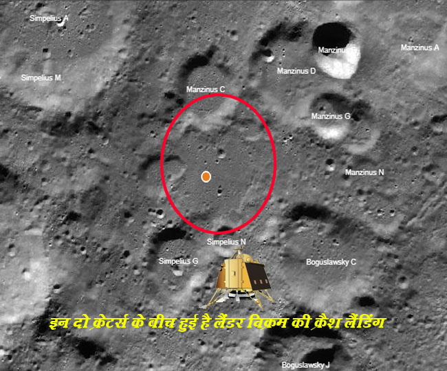 आपको यहां पर ये भी बता दें कि इसरो (Indian Space Research Organisation) लैंडर विक्रम से संपर्क साधने की पूरी कोशिश कर रहा है, लेकिन इसमें अभी तक उसको सफलता हासिल नहीं हो सकी है। जैसे-जैसे दिन गुजरते जा रहे हैं वैसे-वैसे इसकी संभावना भी कम होती जा रही है। गौरतलब है कि लैंडर विक्रम 7 सितंबर को चांद के दो क्रेटर्स मजिनस सी (Maginus C) और सिमपेलियस एन (SimpeliusN) के बीच वाले मैदान में लगभग 70 डिग्री दक्षिणी अक्षांश पर उतरना था। इन दोनों के बीच की दूरी करीब लगभग 45 किमी है। लेकिन सतह छूने से दो किमी पहले ही यह अपने मार्ग से भटक गया और इसका संपर्क इसरो के मिशन कंट्रोल से टूट गया। फिलहाल लैंडर विक्रम चांद की सतह पर पूरी तरह से निर्जीव पड़ा है।