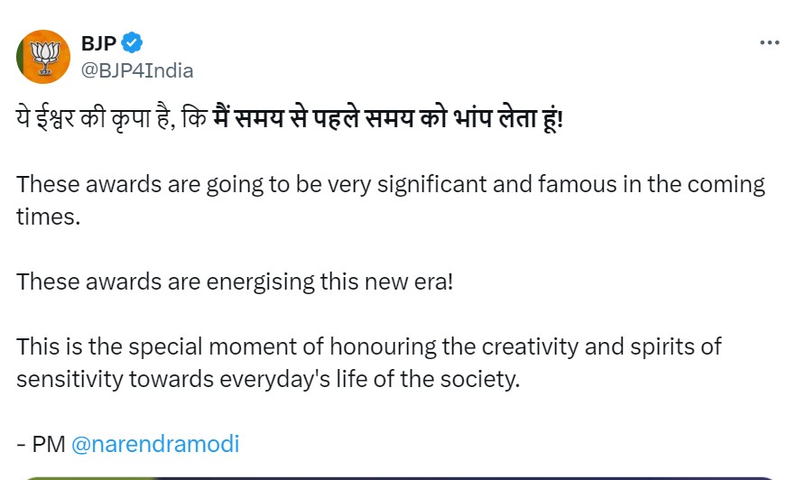 पीएम मोदी ने अवॉर्ड विजेताओं को दी बधाई