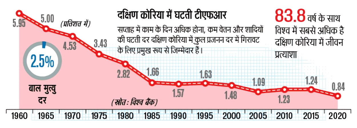तेज आर्थिक विकास और शहरीकरण के लिए जाना गया दक्षिण कोरिया इन दिनों अप्रत्याशित प्रजनन संकट से जूझ रहा है। दक्षिण कोरिया की जन्म दर गिर कर इस स्तर पर पहुंच चुकी है कि अगर यही ट्रेंड जारी रहा तो 21वीं सदी के अंत तक देश की जनसंख्या मौजूदा स्तर की एक तिहाई रह जाएगी।
