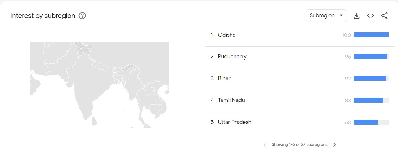 यूं तो दुनिया भर के लोग डॉ. कलाम को लेकर गूगल परसर्च कर रहे हैं, लेकिन देश में सबसे ज्यादा ओडिशा, पुदुचेरी, बिहार, तमिलनाडु और उत्तर प्रदेश में सर्च कर रहे हैं।