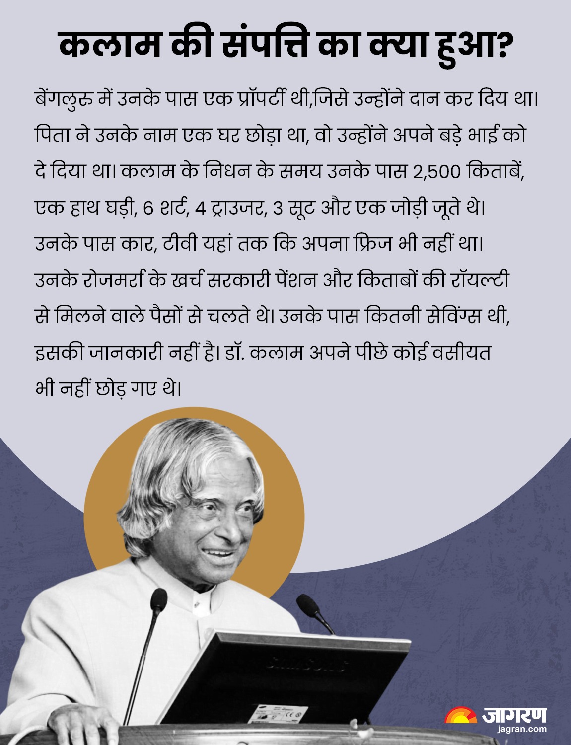 डॉ. कलाम ने देश के पहले स्वदेशी सैटेलाइट लॉन्च व्हीकल एसएलवी-3 को विकसित करने के लिए निदेशक के रूप में महत्वपूर्ण योगदान दिया था। कलाम की जयंती पर आइए हम आपको बताते हैं, उनकी निजी जिंदगी से जुड़े कुछ बेहद अहम और सीख देने वाले किस्से...