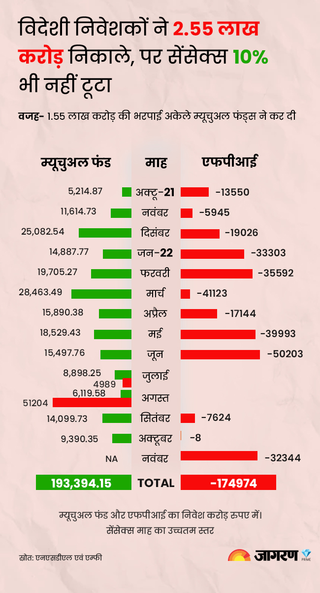 विदेशियों ने सालभर में 1.75 लाख करोड़ निकाले, तो म्यूचुअल फंड्स ने 1.93 लाख करोड़ निवेश कर मजबूती दी