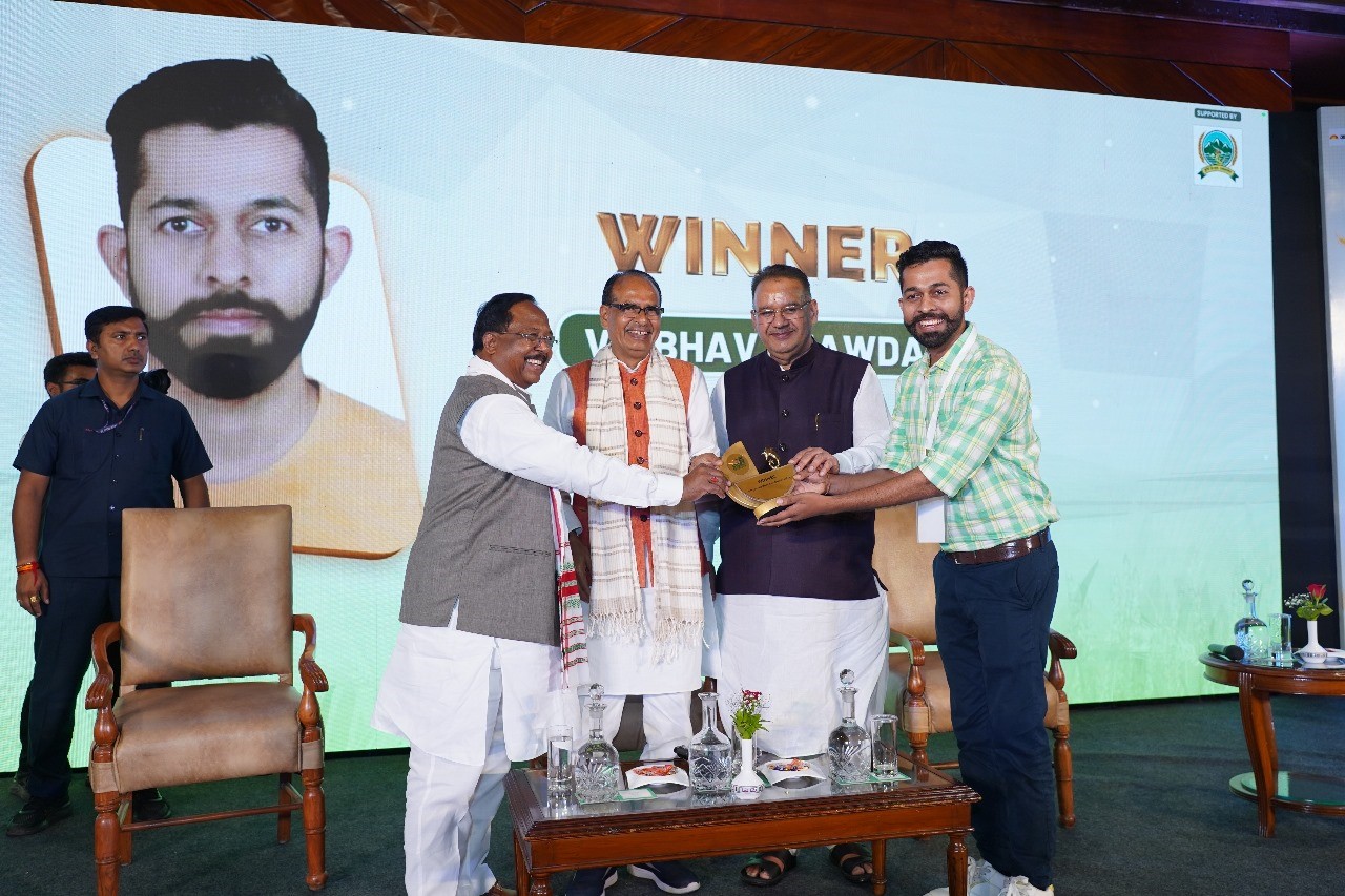 'जागरण एग्री पंचायत समिट व अवार्ड' में मनवानी को सम्मानित करते केंद्रीय कृषि मंत्री शिवराज सिंह चौहान। जागरण