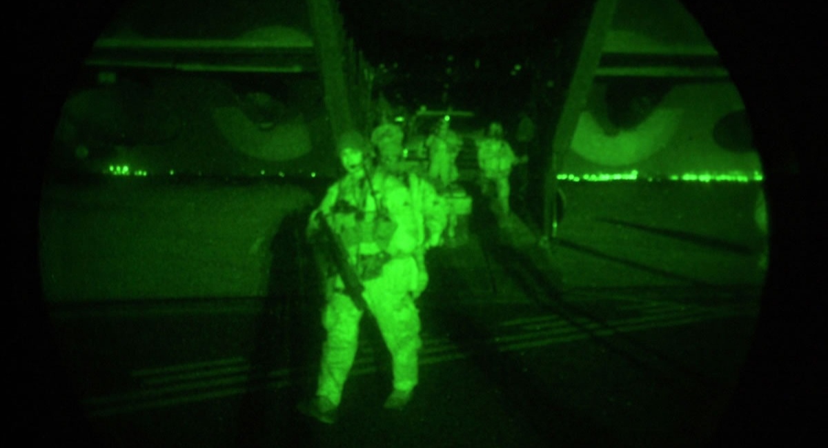 फिर 2 मई 2011 को रात के 11 बजे ( भारतीय समय ) दो ब्लैक हॉक हेलिकॉप्टर ने अफगानिस्तान के जलालाबाद से पाकिस्तान के एबटाबाद के लिए उड़ान भरी। इनमें सील दल के 23 सदस्य सवार, दुभाषिया अहमद और बुलेट प्रूफ जैकेट पहने बेल्जियन शेफर्ड नस्ल का कुत्ता कैरो थे।