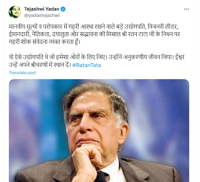 तेजस्वी ने रतन टाटा को बताया विजनरी लीडर